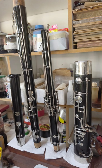 ateliê do fagote de Hary Schweizer passando por uma revisão geral. A venda